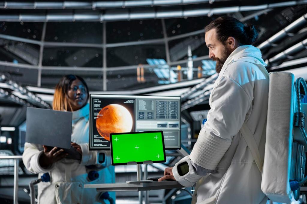 Richte Hauptmöbel so aus, dass die längste Raumdiagonale sichtbar bleibt. Eine freie Diagonale addiert gefühlte Tiefe. In einem Mikro‑Loft genügte das Drehen des Sofas um 15 Grad, um die Fensterlinie zu öffnen und den Raum erstaunlich zu strecken.